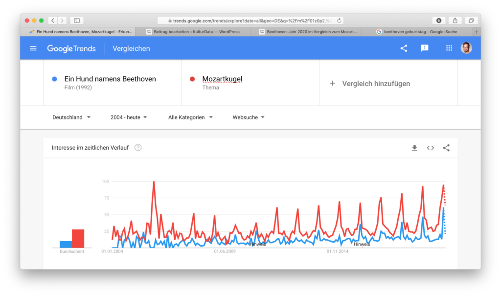 Aber du vergleichst hier doch Äpfel mit Birnen! Natürlich ist ein 250. Geburtstag ein Grund für viele Suchanfragen!